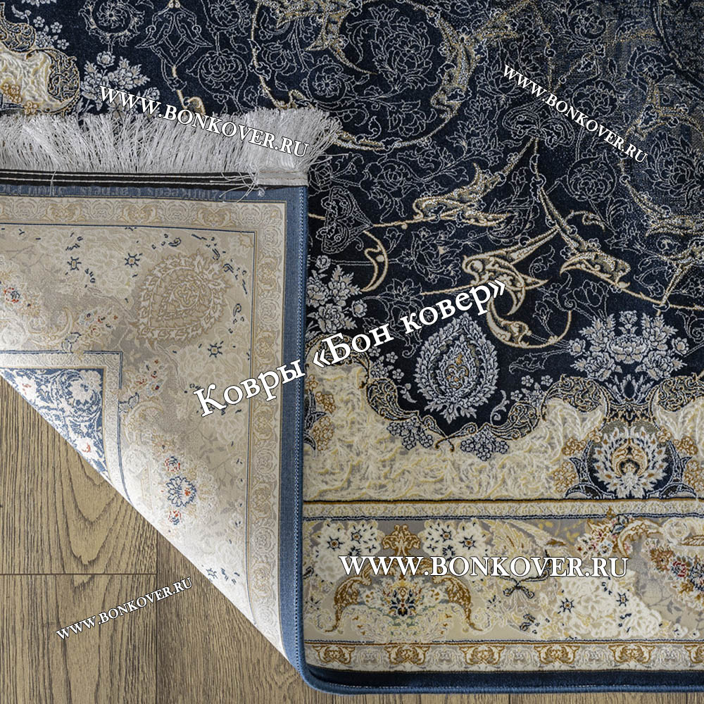 Отличный ковер , правда на размере 160х400 см разместилось две серединки - так даже гармоничнее ! Цвет темно-синий - камера плохо передает