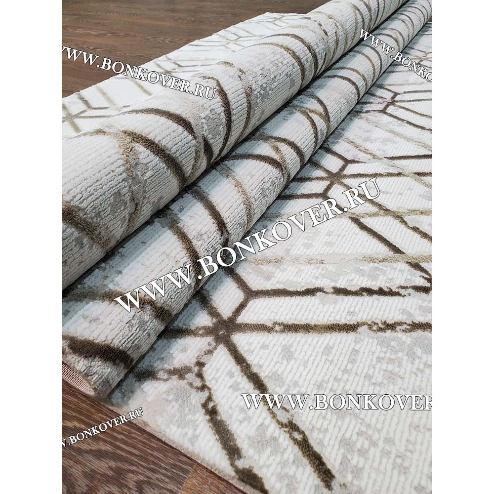 Изящный Ковер Для Гостиной Бежево-коричневый Ромбы Дизайн 33 наполняет интерьер жилого пространства теплом и уютом, гармонично сочетает в себе изящество и стиль. Он соткан из высококачественных материалов, комфортный и долговечный.