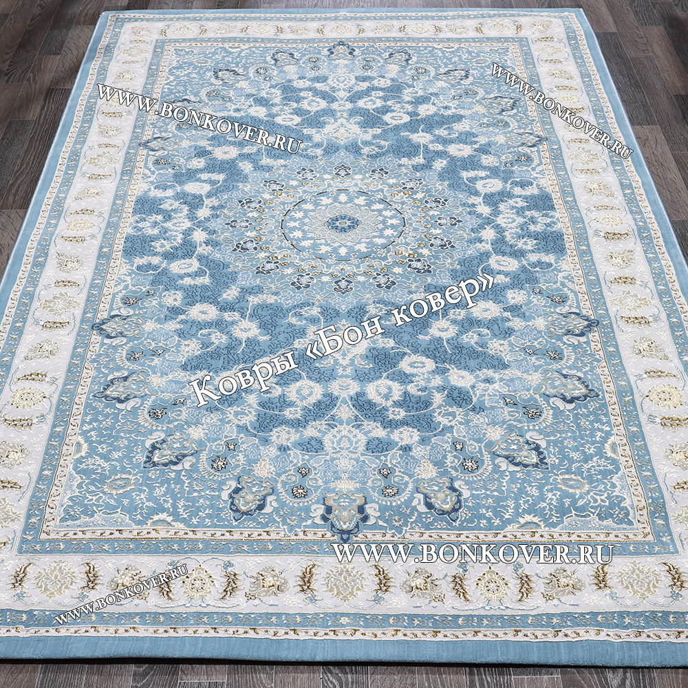 Ковер Для гостиной дизайн 184 Турция Голубой станет шикарным преображением жилого помещения, подчеркивая высокий статус семьи владельца.