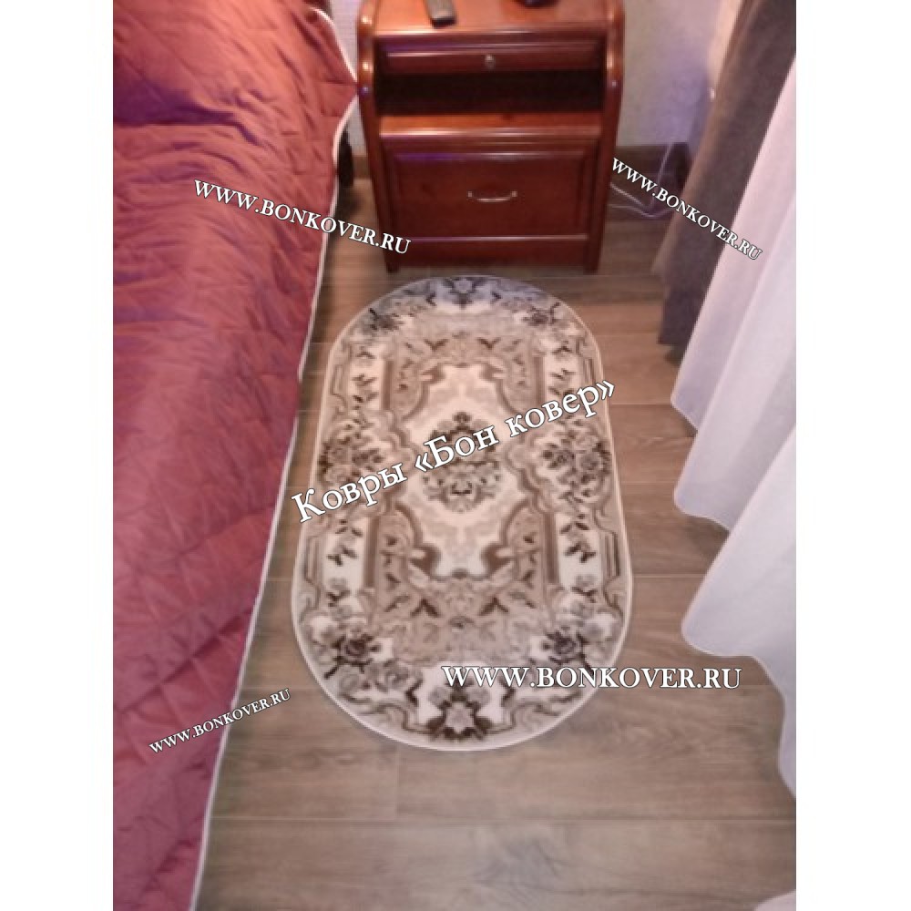 Очень хороший прикроватный коврик коричнево-бежевых тонов, в ближайшее время закажем токой-же размером 1,5×2,3 так-же в спальню. Не зря долго выбирали, только жаль что долго шёл. -