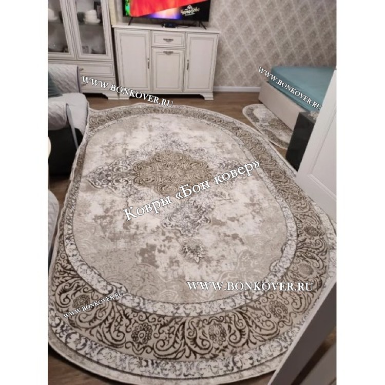 Ковер Турция Для Гостиной Дизайн 98 Серый с Бежевым станет великолепным преображением жилого помещения, подчеркивая высокий статус хозяина.