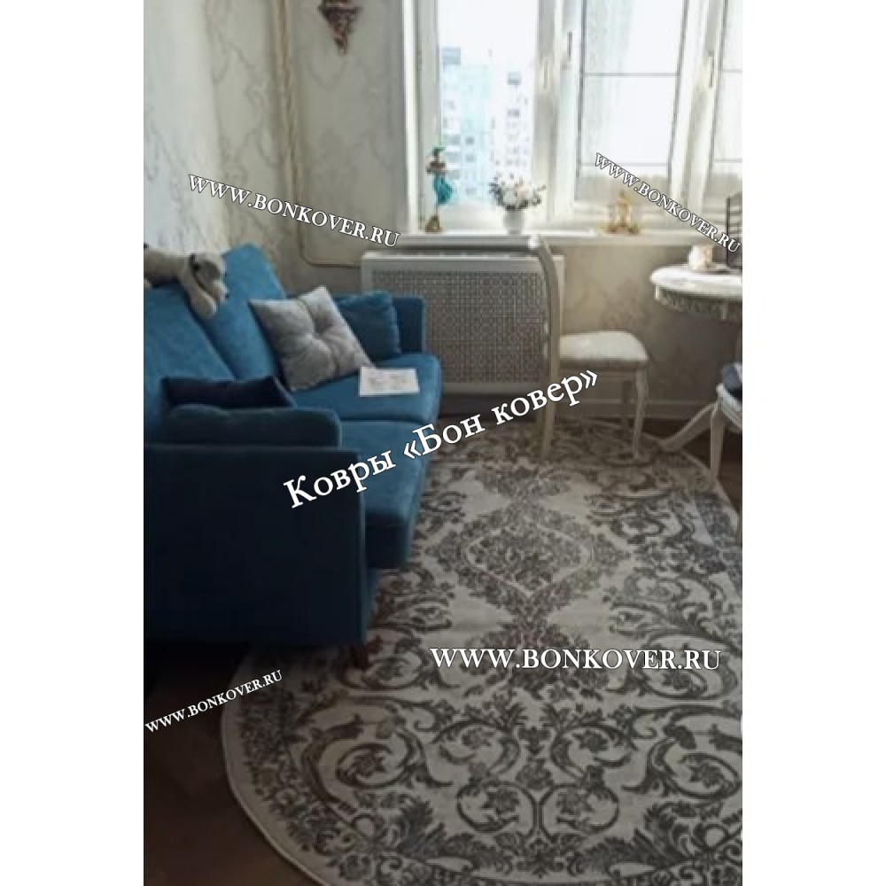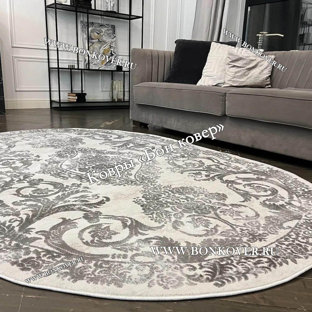 Изящный Ковер в гостиную дизайн 12 Серый Овал наполняет интерьер квартиры теплом и уютом, гармонично сочетает в себе изящество и красоту. Он создан из износостойких материалов, комфортный и долговечный.