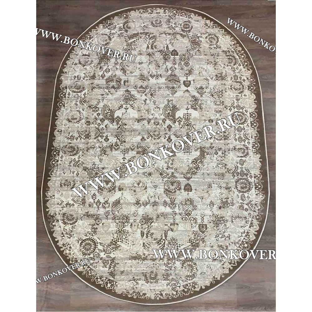 Ковер в гостиную дизайн 20 Бежево-коричневый Овал new станет стильным преображением жилого помещения, подчеркивая высокий статус хозяина.