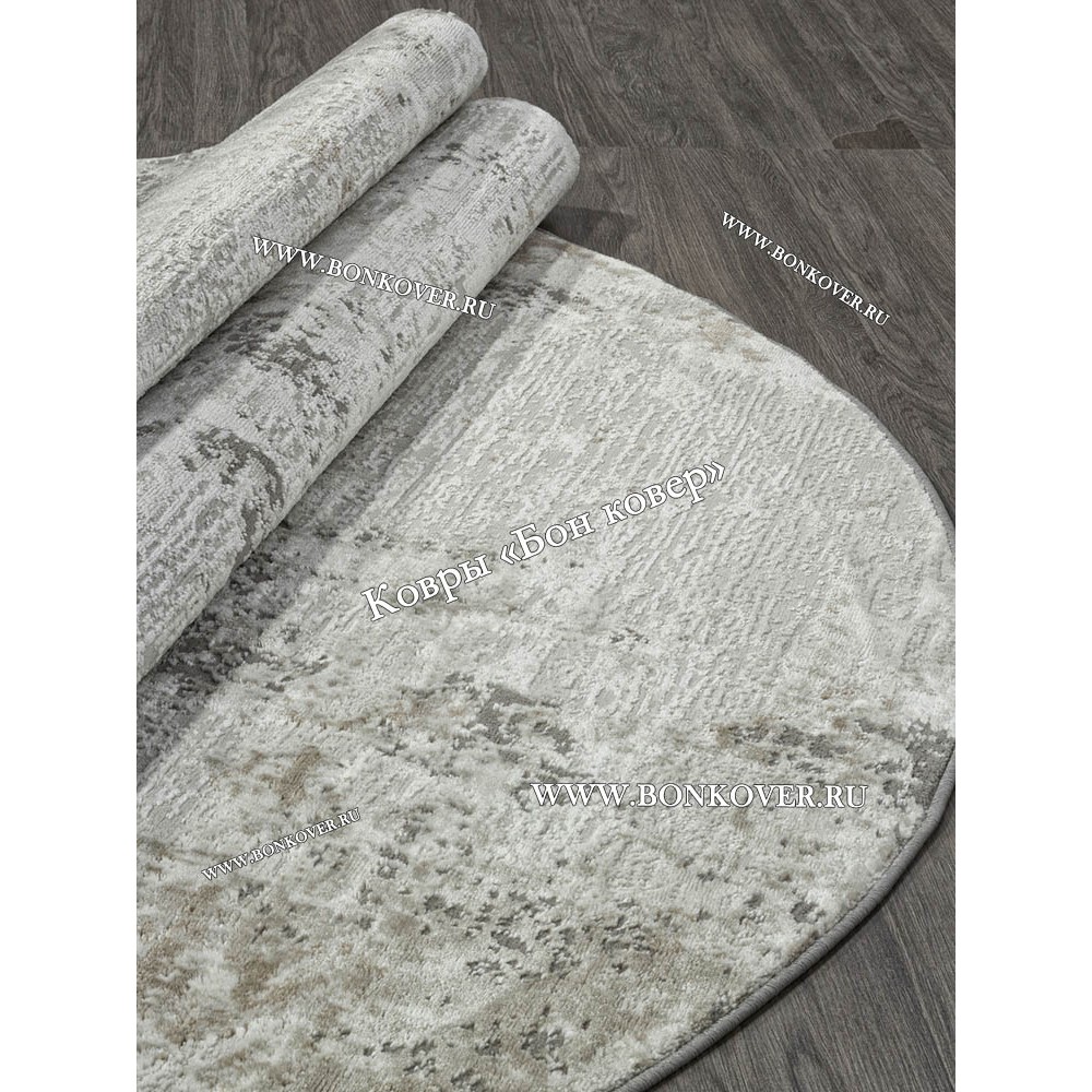Изящный Современный Ковер Дизайн 037 Серый с белым Овал наполняет интерьер комнаты теплом и уютом, гармонично сочетает в себе изящество и стиль. Он создан из экологически чистого сырья, прочный и долговечный.