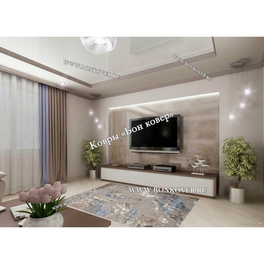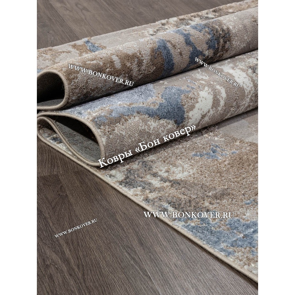 Современный ковер для комнаты 12 Бежевый с синим станет стильным преображением жилого помещения, подчеркивая высокий статус семьи владельца.